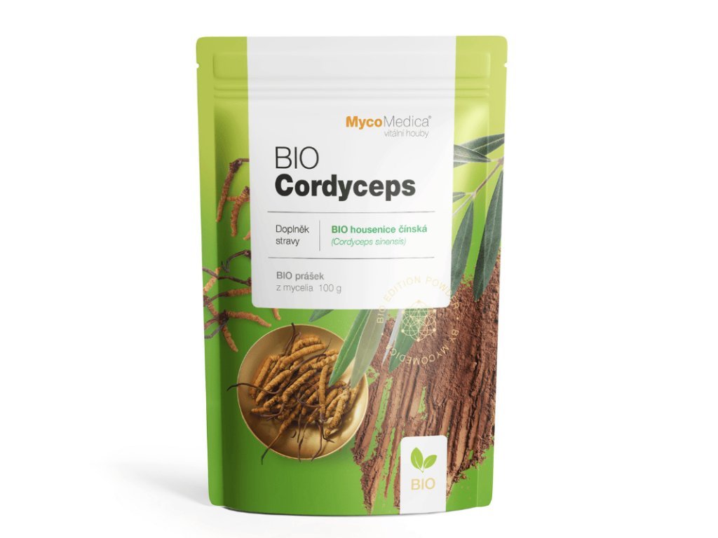 Hmotnosť balenia: 100 g jemne mletého BIO prášku z mycélia Cordycepsu.