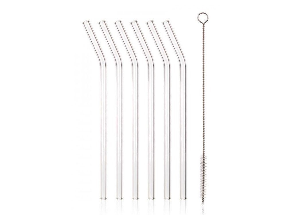 Sada sklenených slamiek – 6 ks + čistiaca kefka