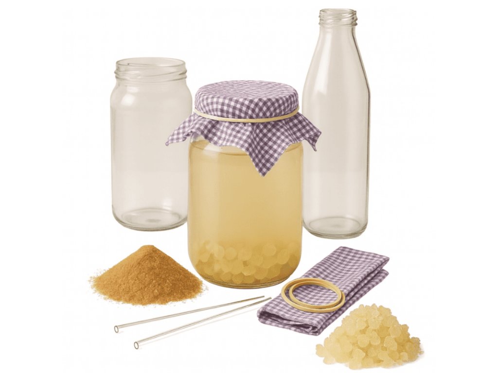 - Sklenená nádoba na fermentáciu (1–3 l)